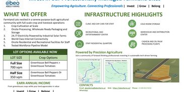 Each lot comes with a professionally managed Greenhouse Operations creating a recurring income stream while Farmland Lots continue to appreciate in value.
